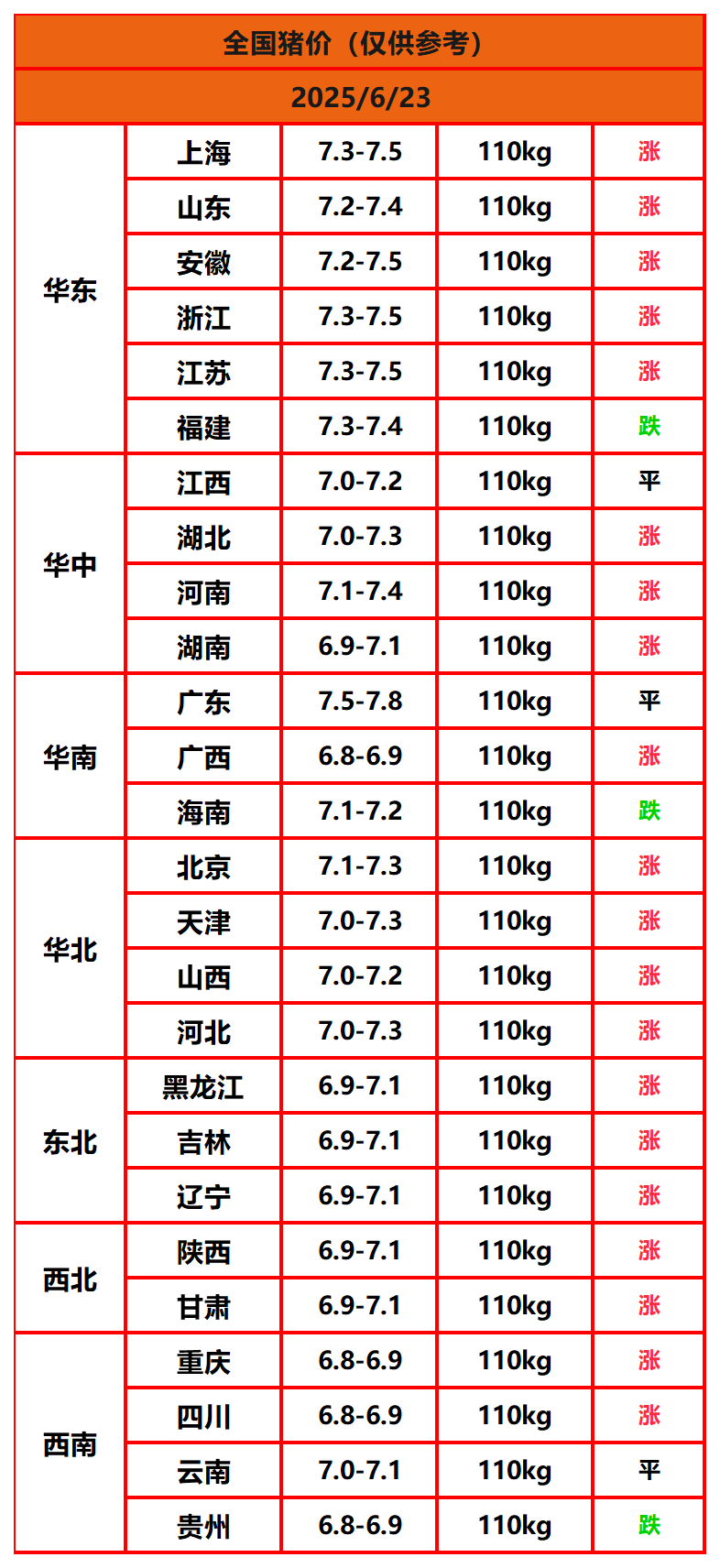 2025年6月23日猪价,今日全国猪价行情走势:20涨3平3跌。