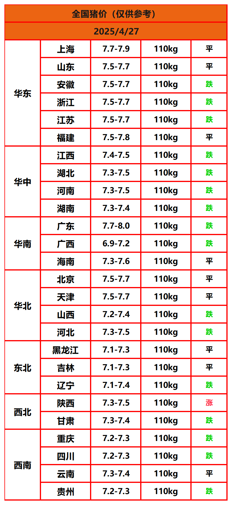 今日猪价 | 2025年4月27日全国猪价行情一览表!